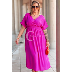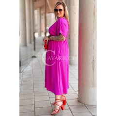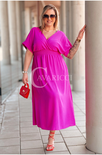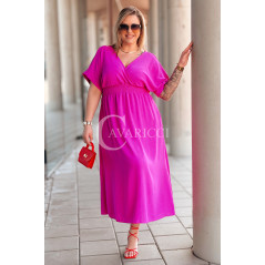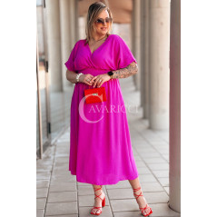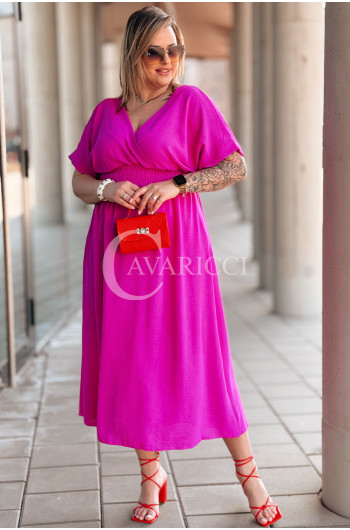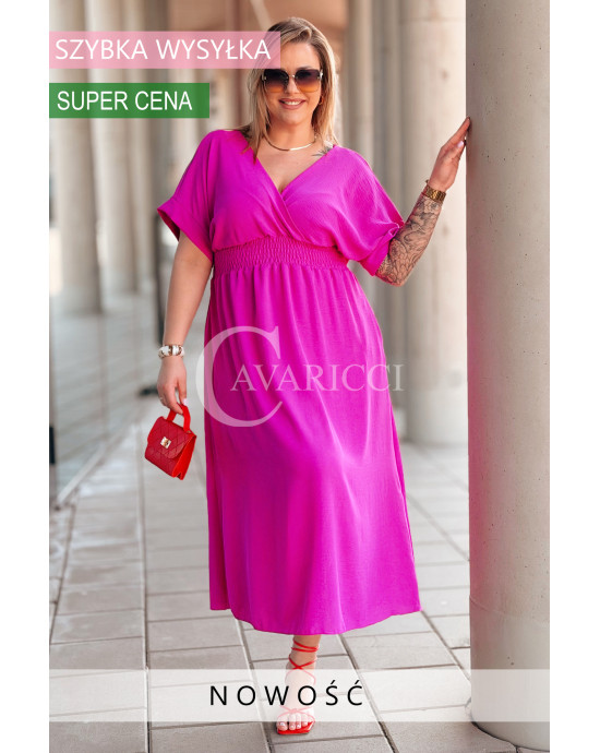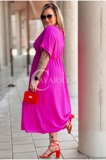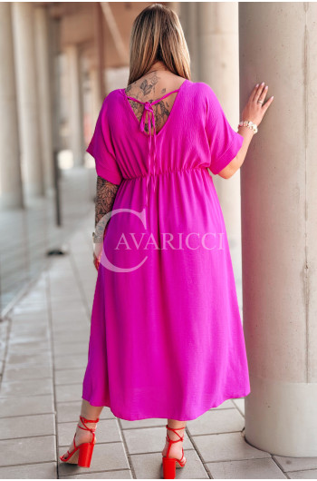 ISAIA - Długa lekka zwiewna sukienka z dodatkowym wiązaniem na plecach w kolorze fuksji