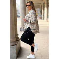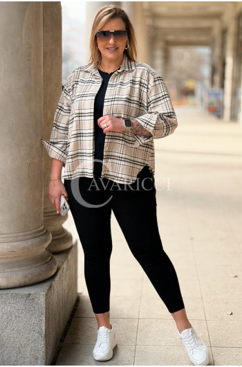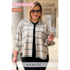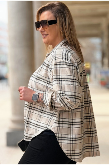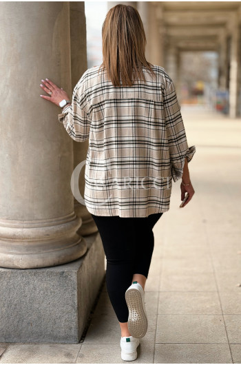 MIRABELLA - Flanelowa boho koszula w kratę w kolorze beżowym