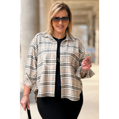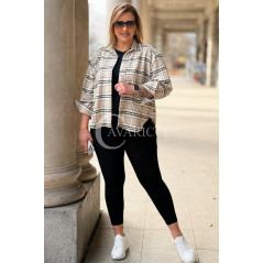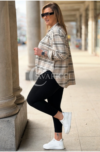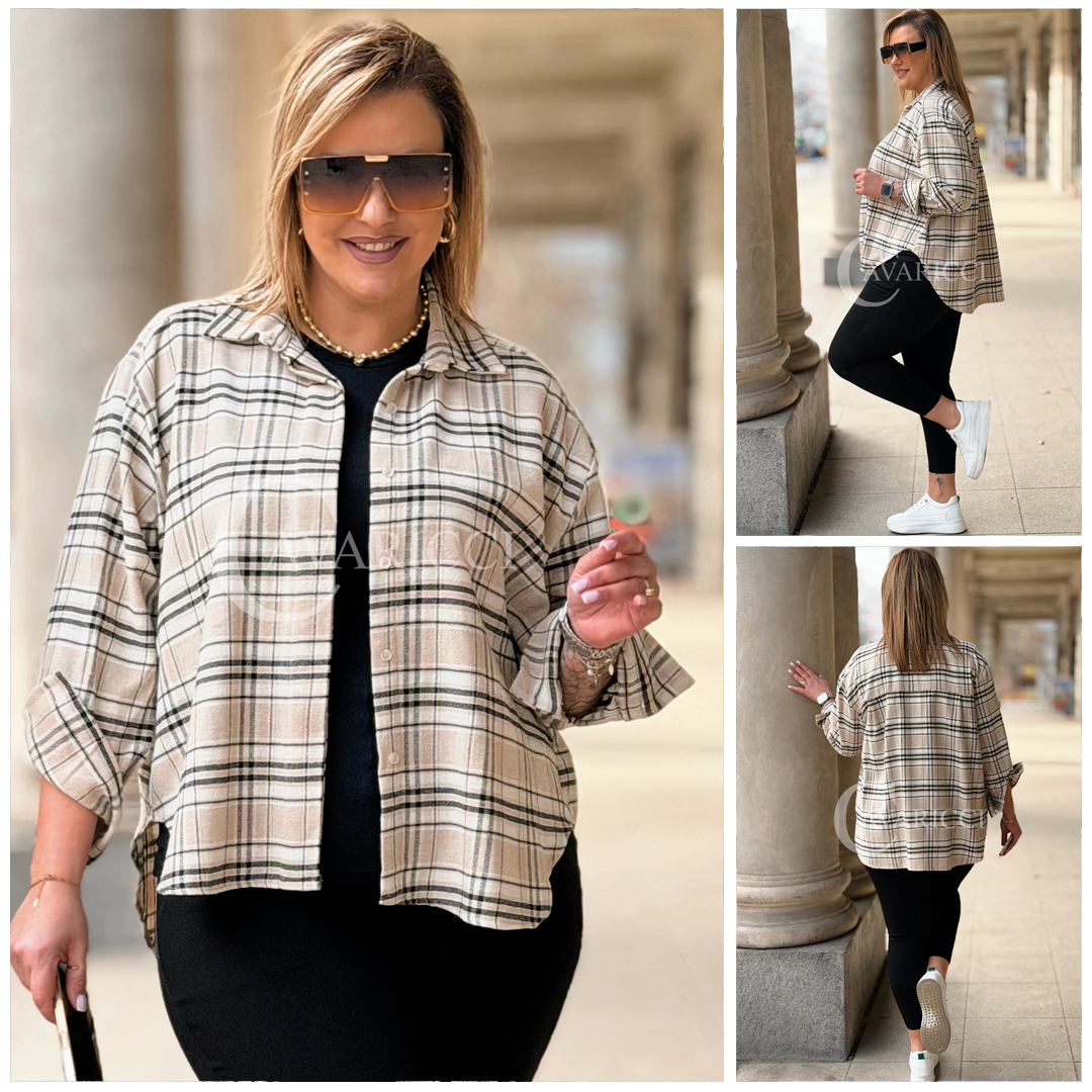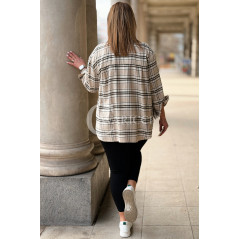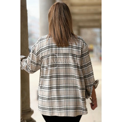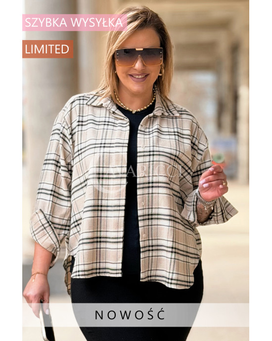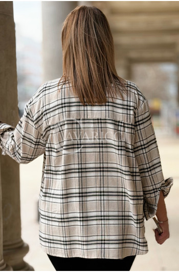MIRABELLA - Flanelowa boho koszula w kratę w kolorze beżowym