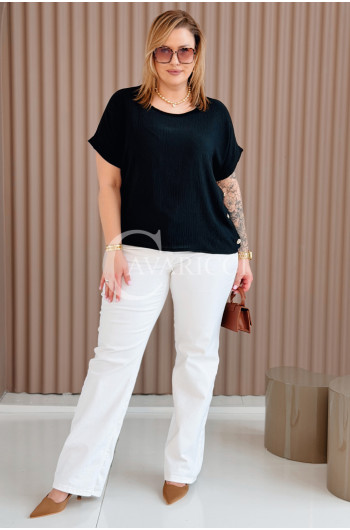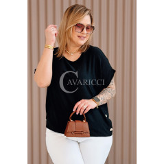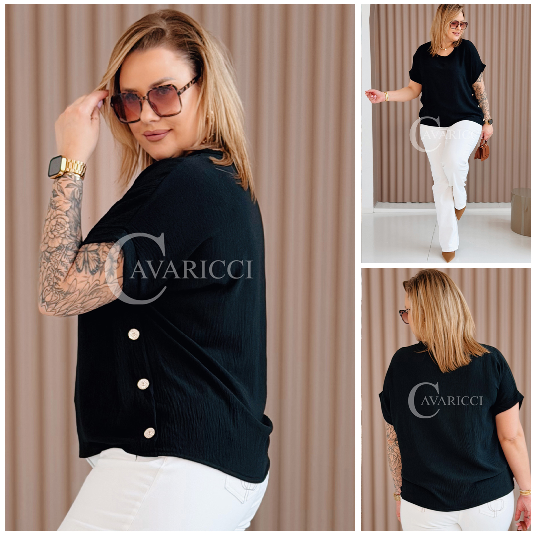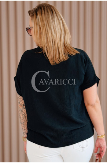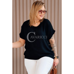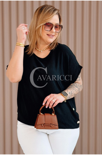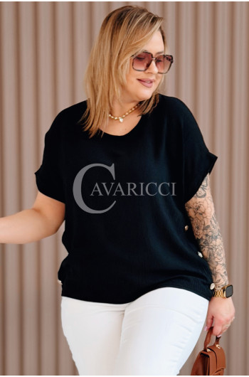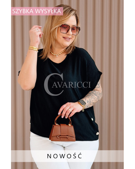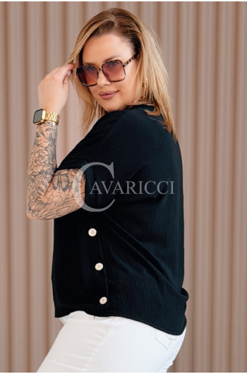 GABRIELLE - krótka bluzeczka ozdobiona guziczkami z krótkim rękawkiem w kolorze czarnym