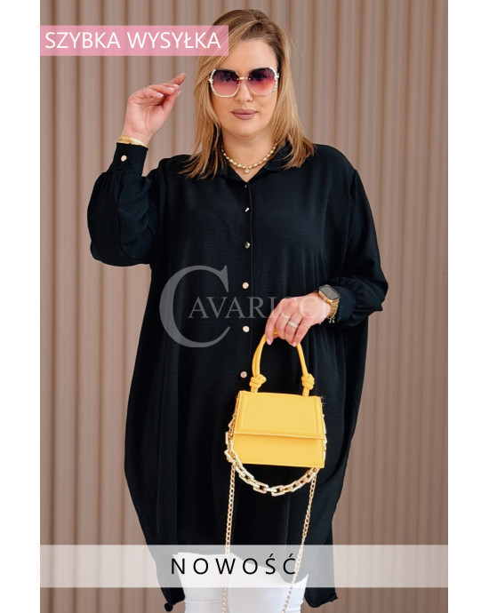 PETALO – Prosta sukienka zapinana na guziki z mankietem w kolorze czarnym