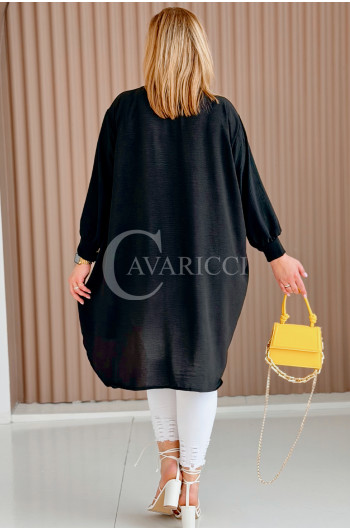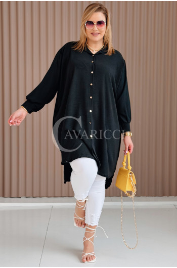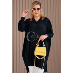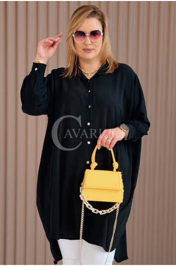 PETALO – Prosta sukienka zapinana na guziki z mankietem w kolorze czarnym