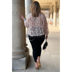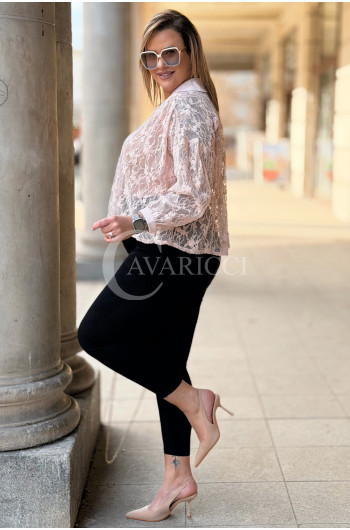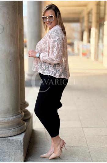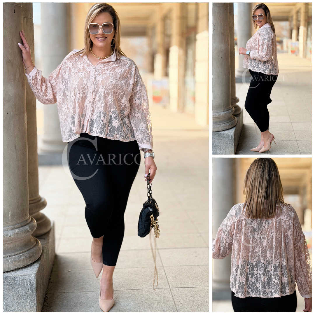 ROSSA - klasyczna koronkowa koszula z kontrastującym kołnierzykiem i mankietami w kolorze różowym