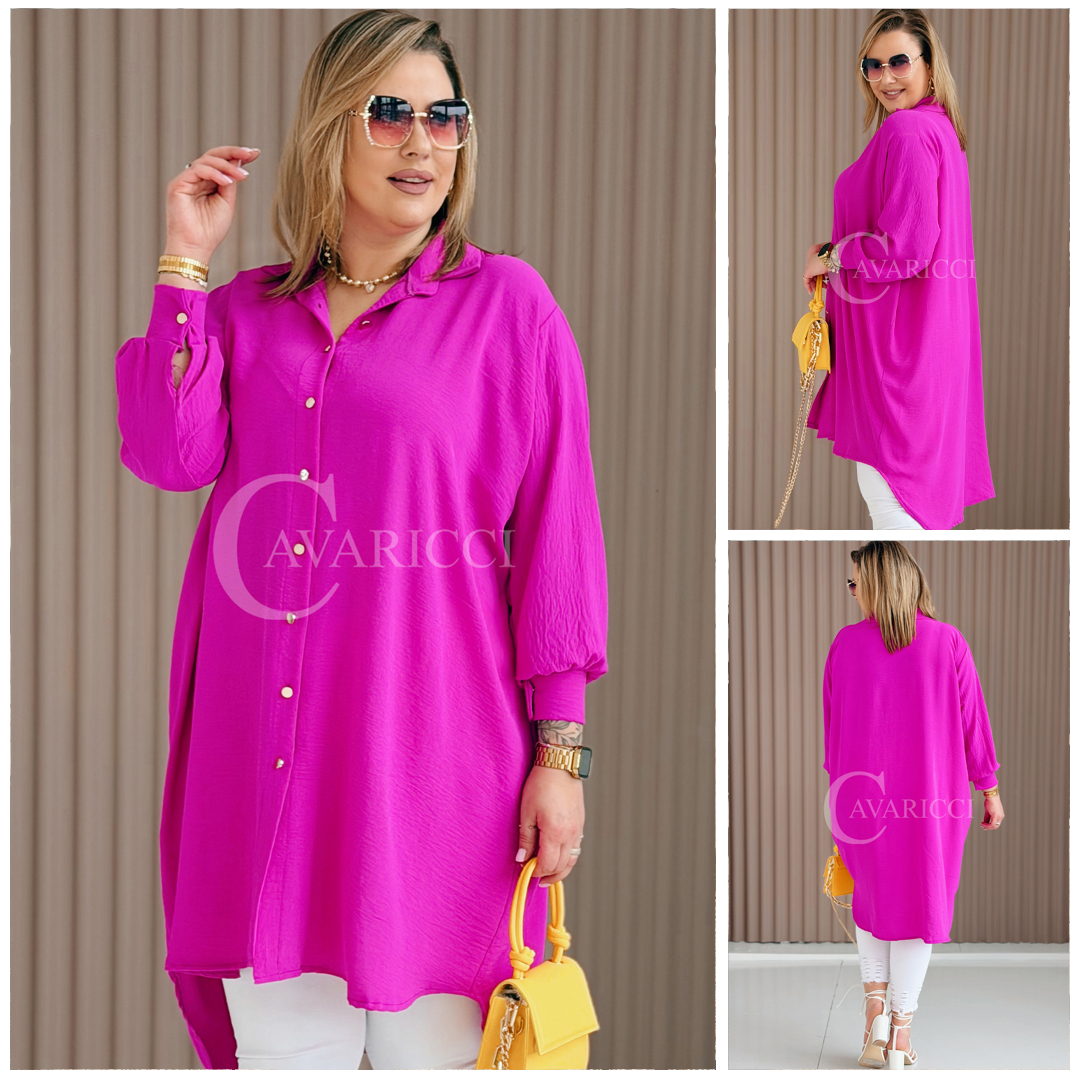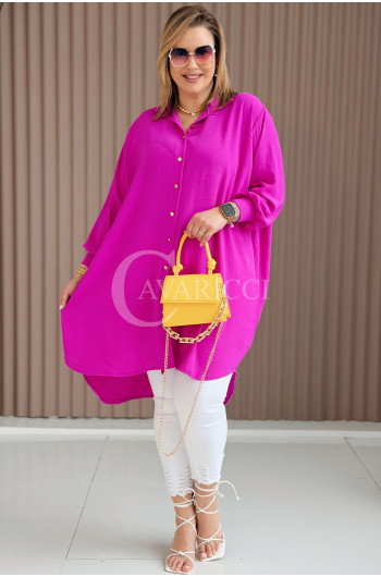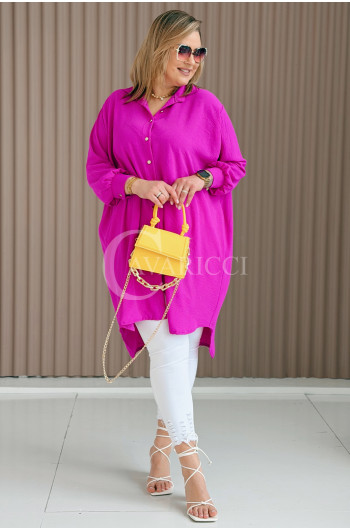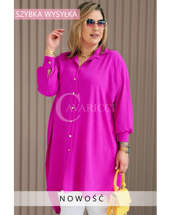 PETALO – Prosta sukienka zapinana na guziki z mankietem w kolorze fuksji
