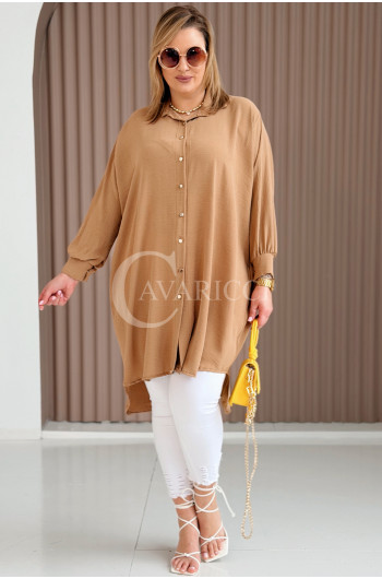 PETALO – Prosta sukienka zapinana na guziki z mankietem w kolorze karmelowym