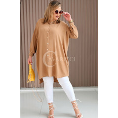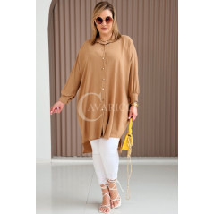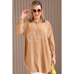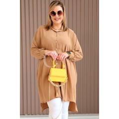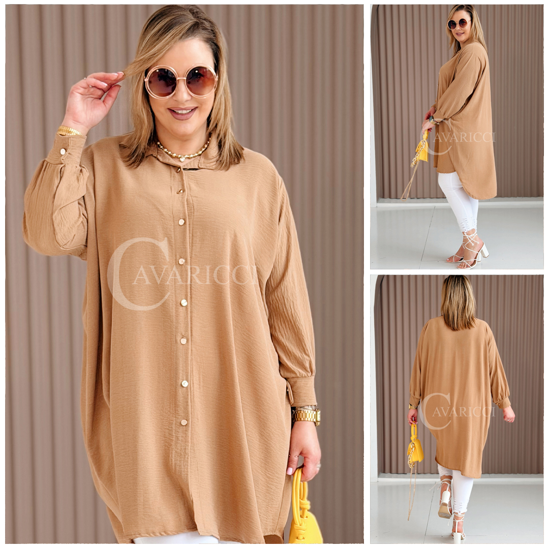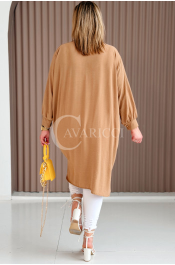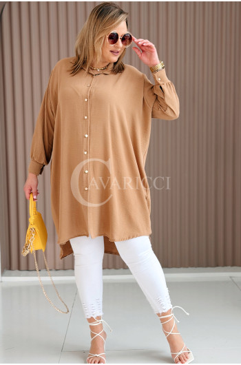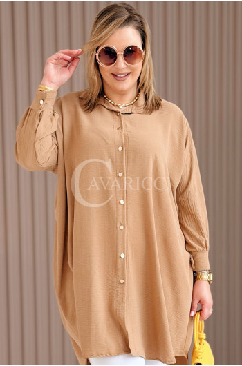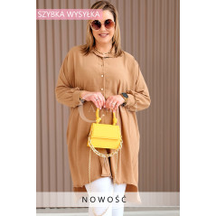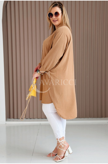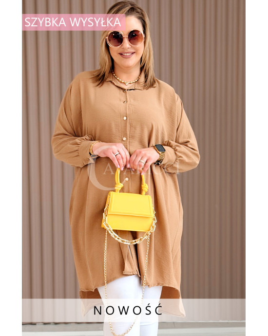 PETALO – Prosta sukienka zapinana na guziki z mankietem w kolorze karmelowym