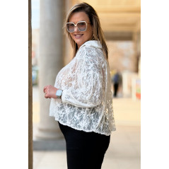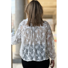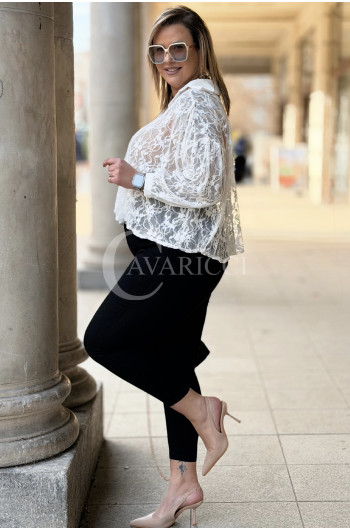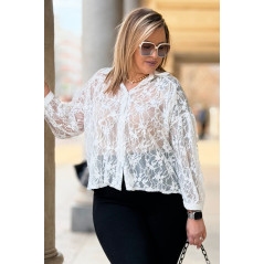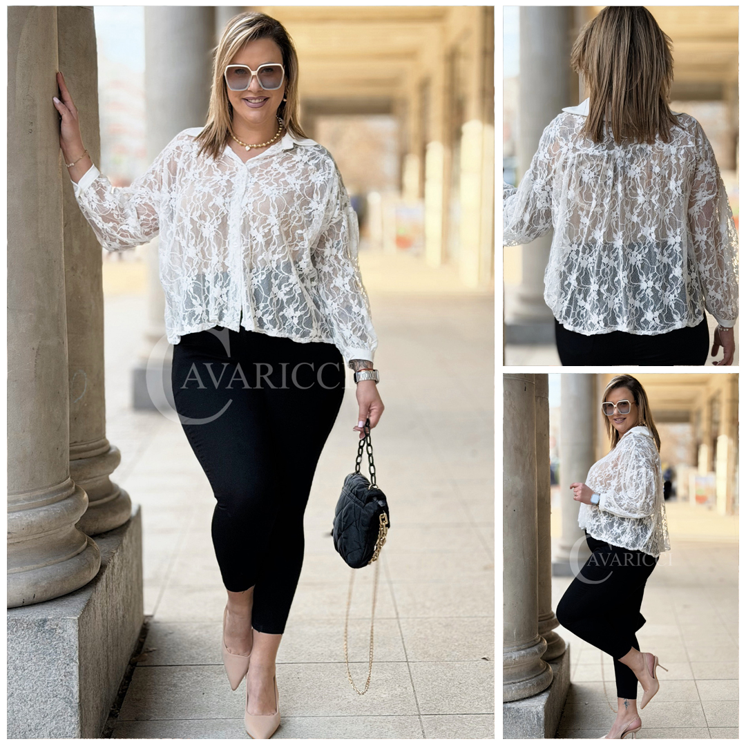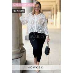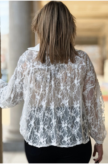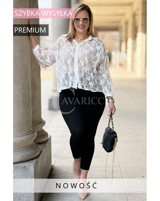 ROSSA - klasyczna koronkowa koszula z kontrastującym kołnierzykiem i mankietami w kolorze białym