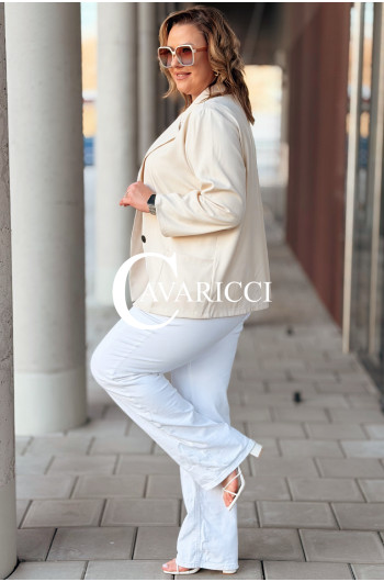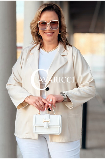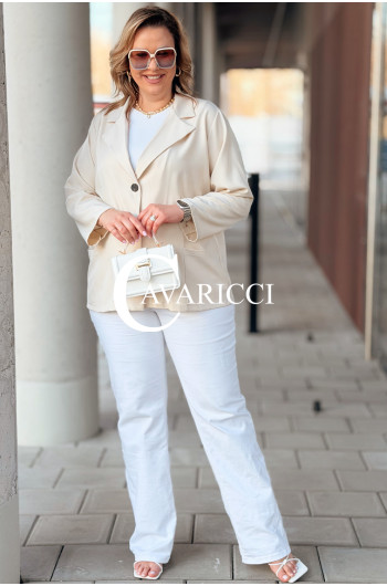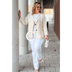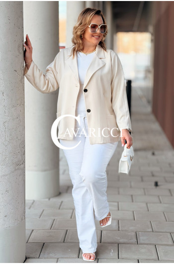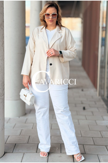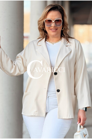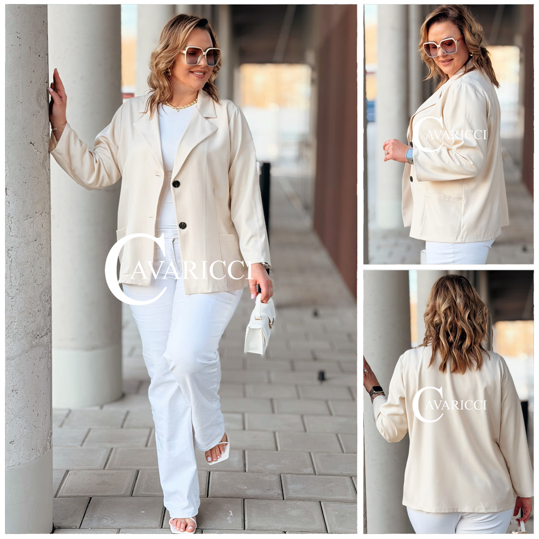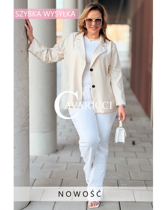 MEDI - Klasyczna cienka zapinana na guzik marynarka w kolorze beżowym