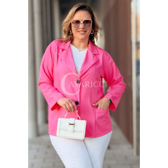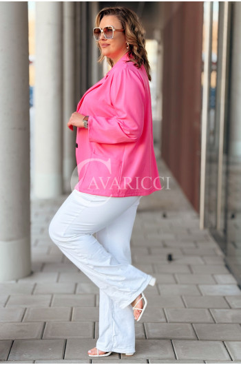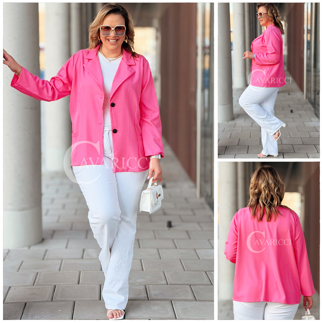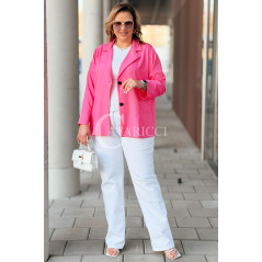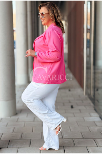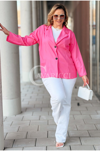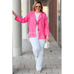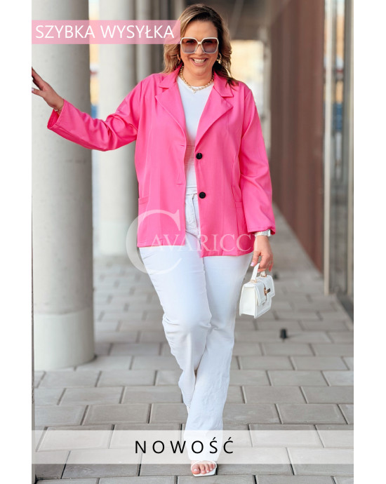 MEDI - Klasyczna cienka zapinana na guzik marynarka w kolorze landrynkowym