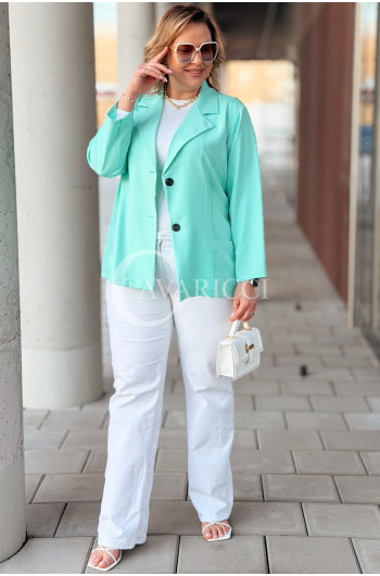 MEDI - Klasyczna cienka zapinana na guzik marynarka w kolorze miętowym