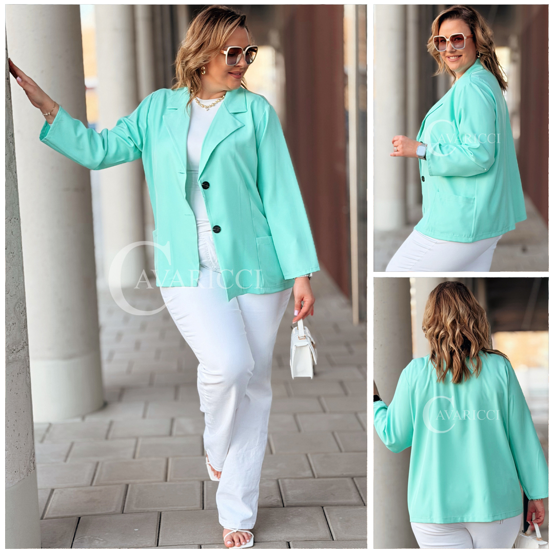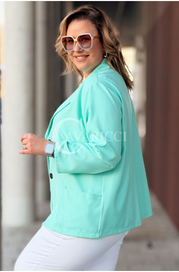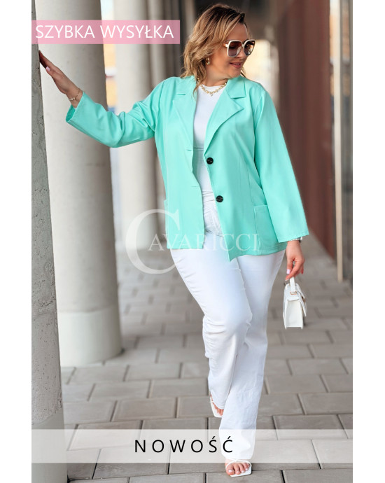 MEDI - Klasyczna cienka zapinana na guzik marynarka w kolorze miętowym