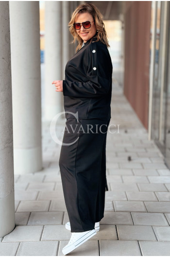 GALA - komplet dresowy spodnie z bluza w kolorze czarnym z ozdobnymi guzikami