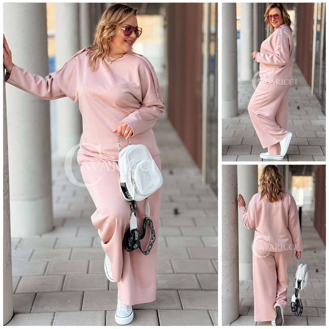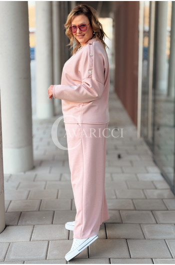 GALA - komplet dresowy spodnie z bluza w kolorze brudnego różu z ozdobnymi guzikami