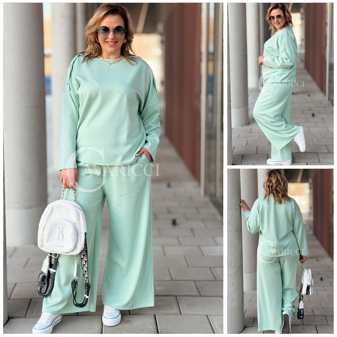 GALA - komplet dresowy spodnie z bluza w kolorze miętowym z ozdobnymi guzikami