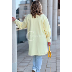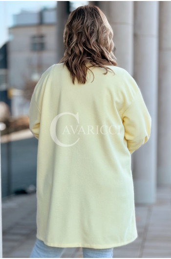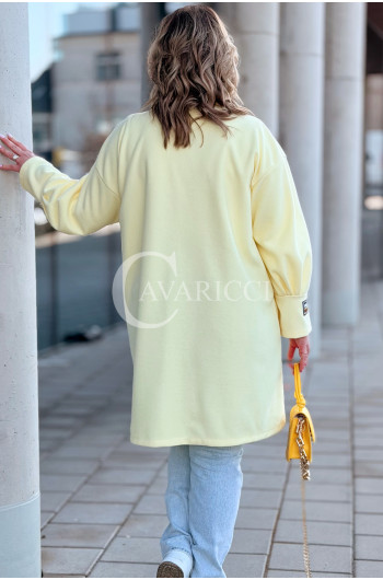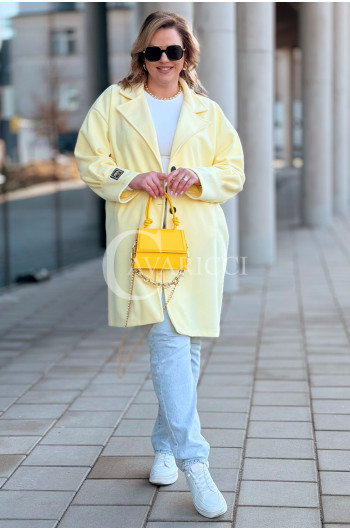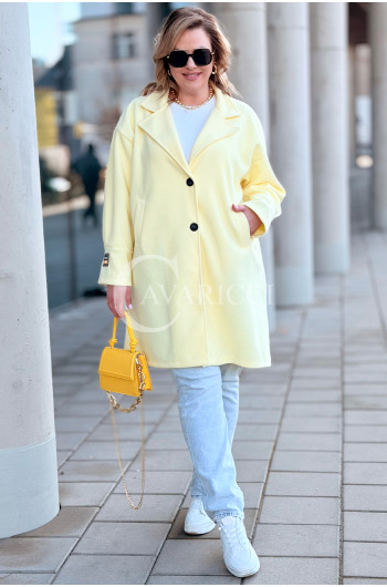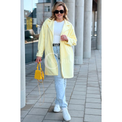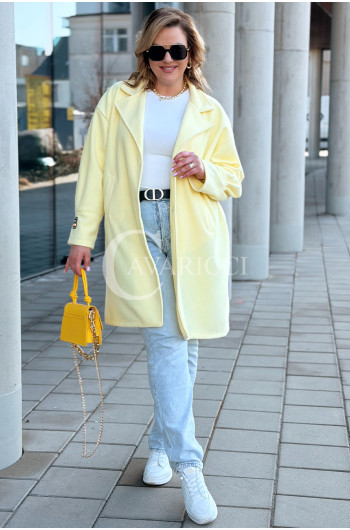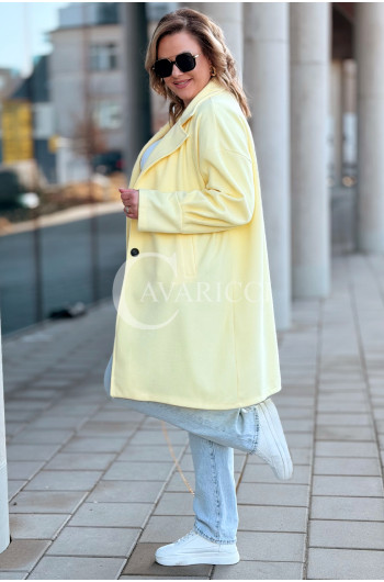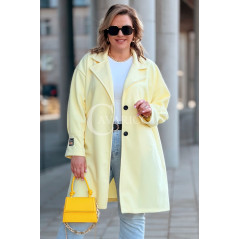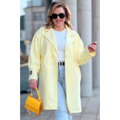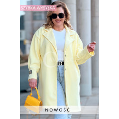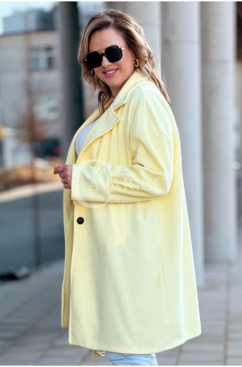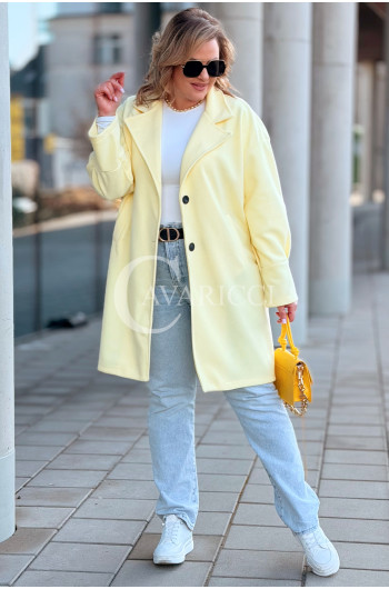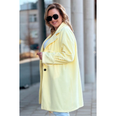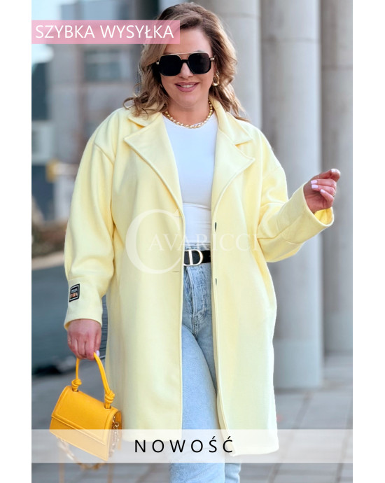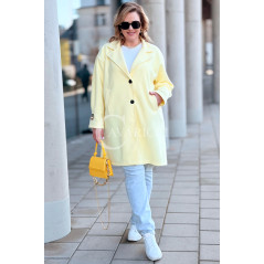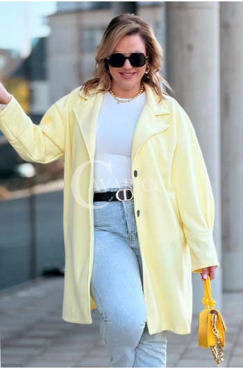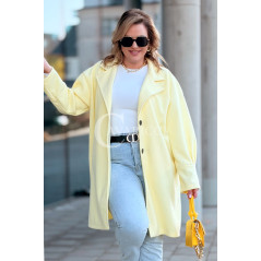 MIUNA - Wiosenny lekki płaszczyk zapinany na guziki z bufiastymi rękawami w kolorze żółtym