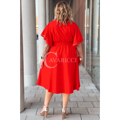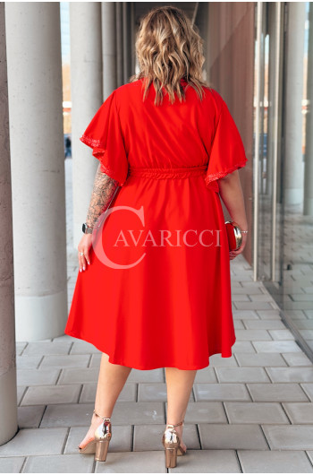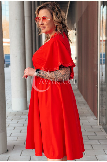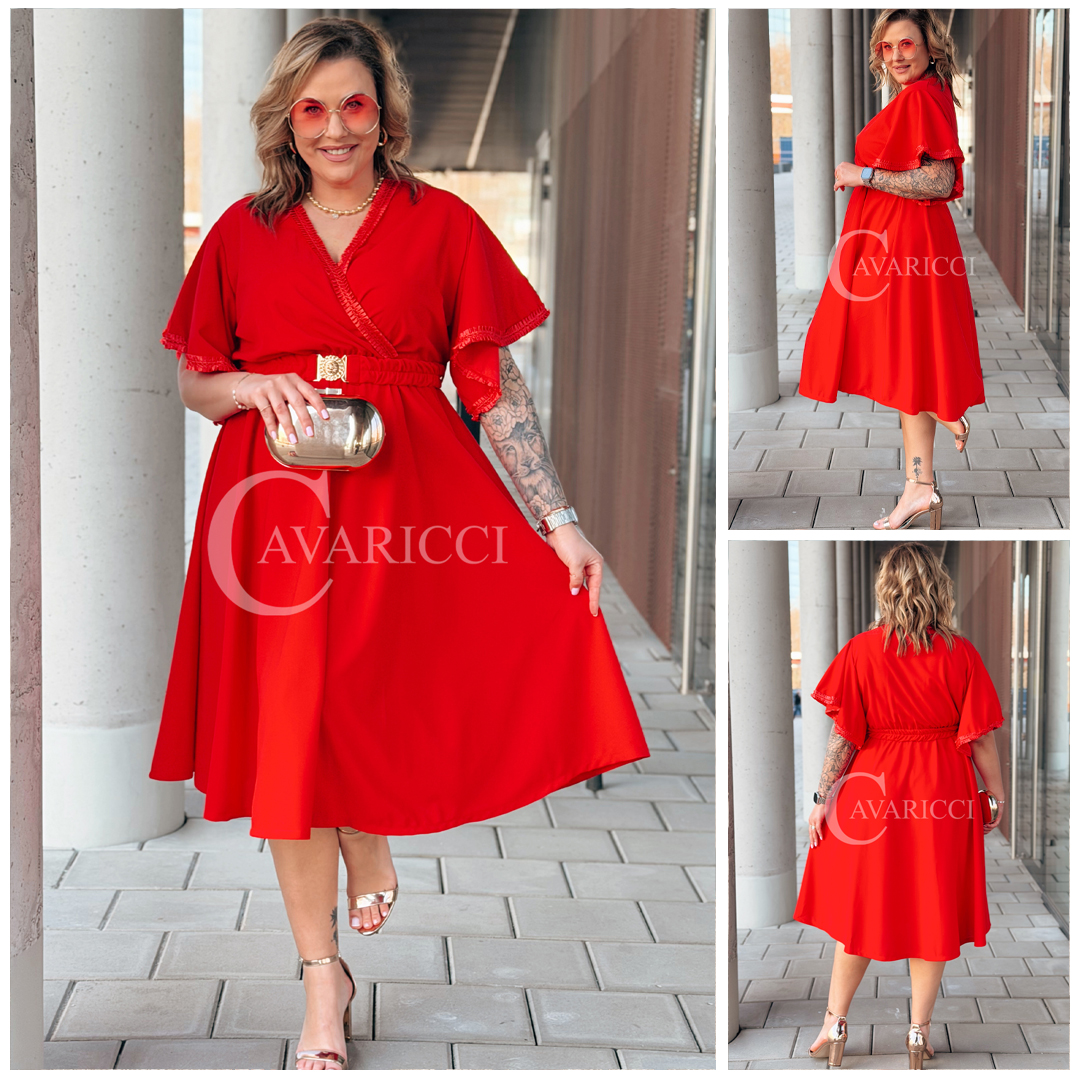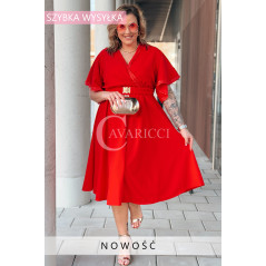 LAVENNA - rozkloszowana sukienka midi z dekoltem w literkę V idealna na wesele w kolorze czerwonym