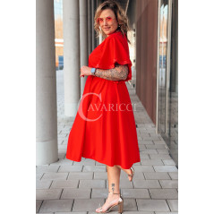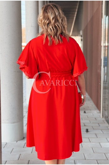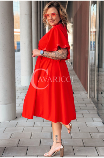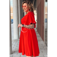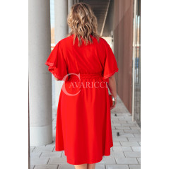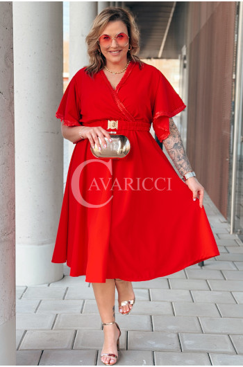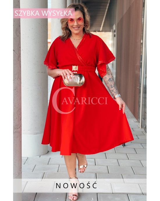 LAVENNA - rozkloszowana sukienka midi z dekoltem w literkę V idealna na wesele w kolorze czerwonym