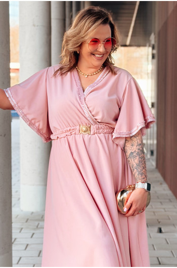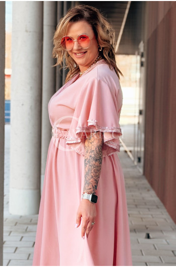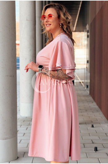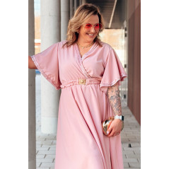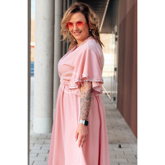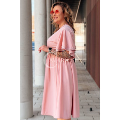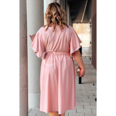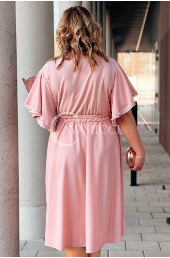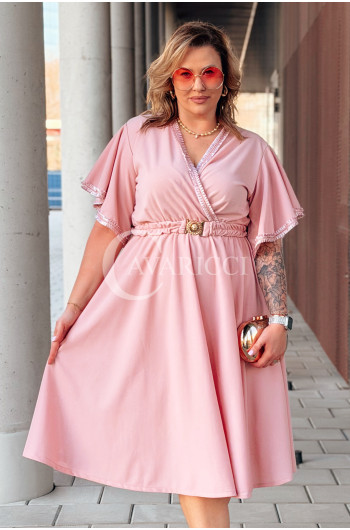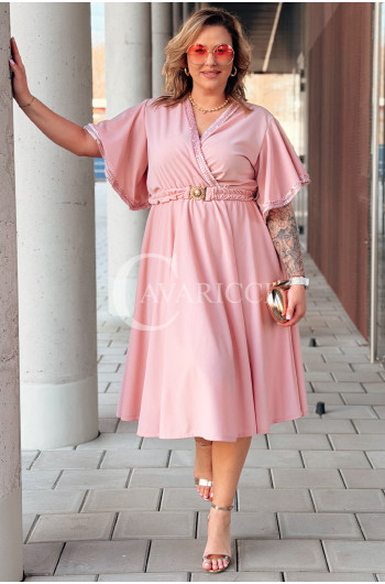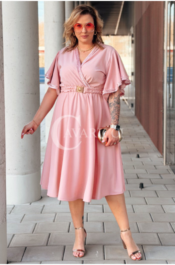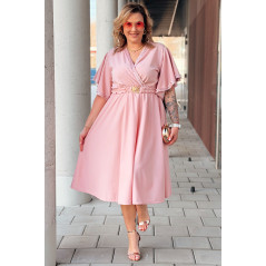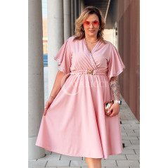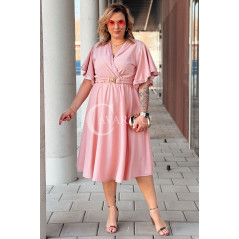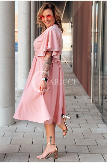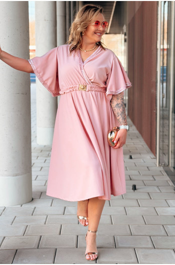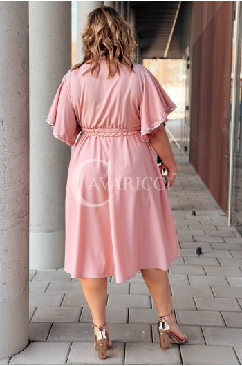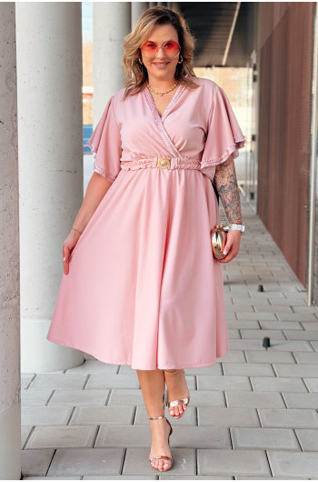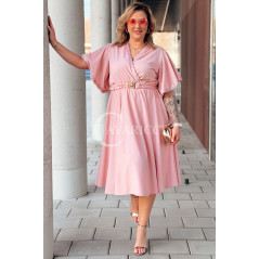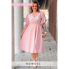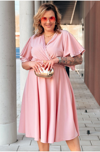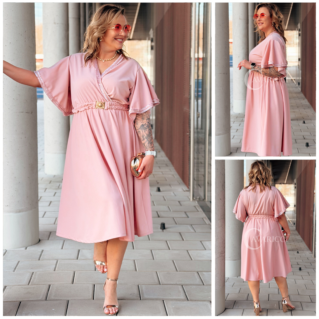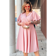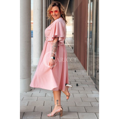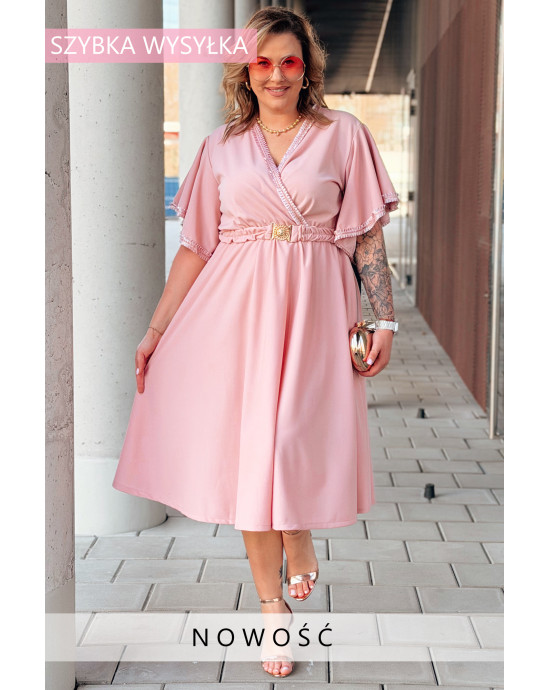 LAVENNA - rozkloszowana sukienka midi z dekoltem w literkę V idealna na wesele w kolorze brudnego różu