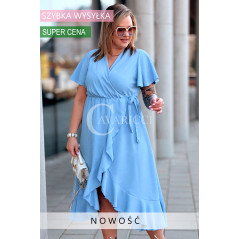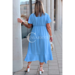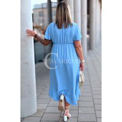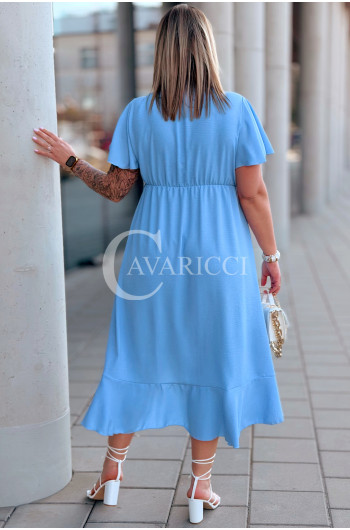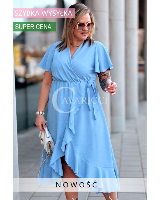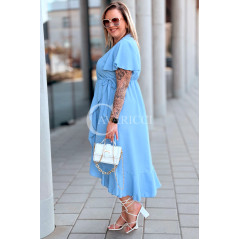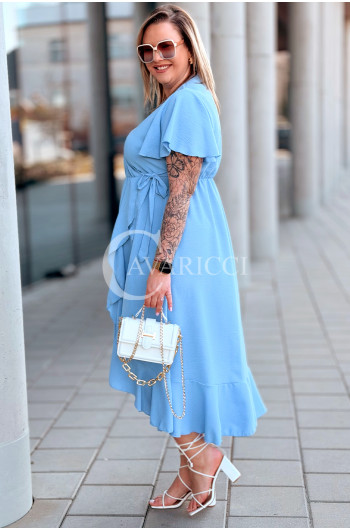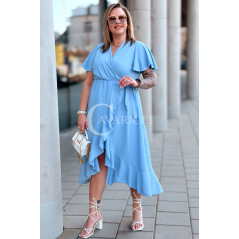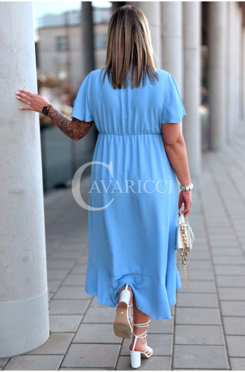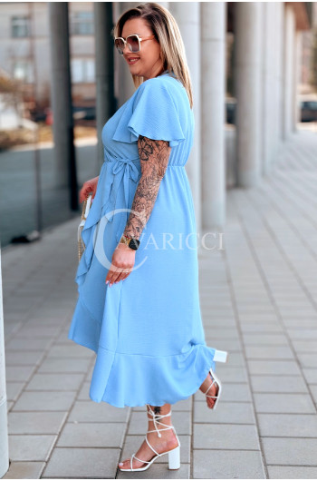 FRANCESCA - Długa zwiewna asymetryczna sukienka z falbankami w kolorze błękitnym