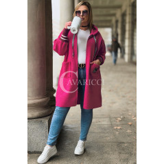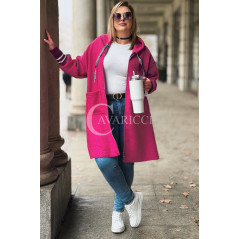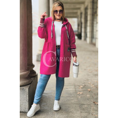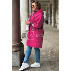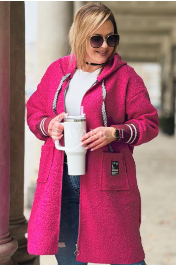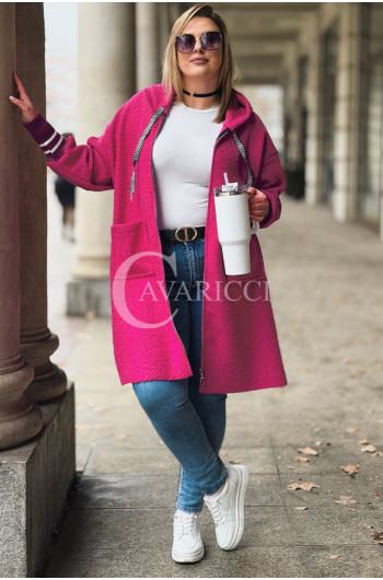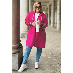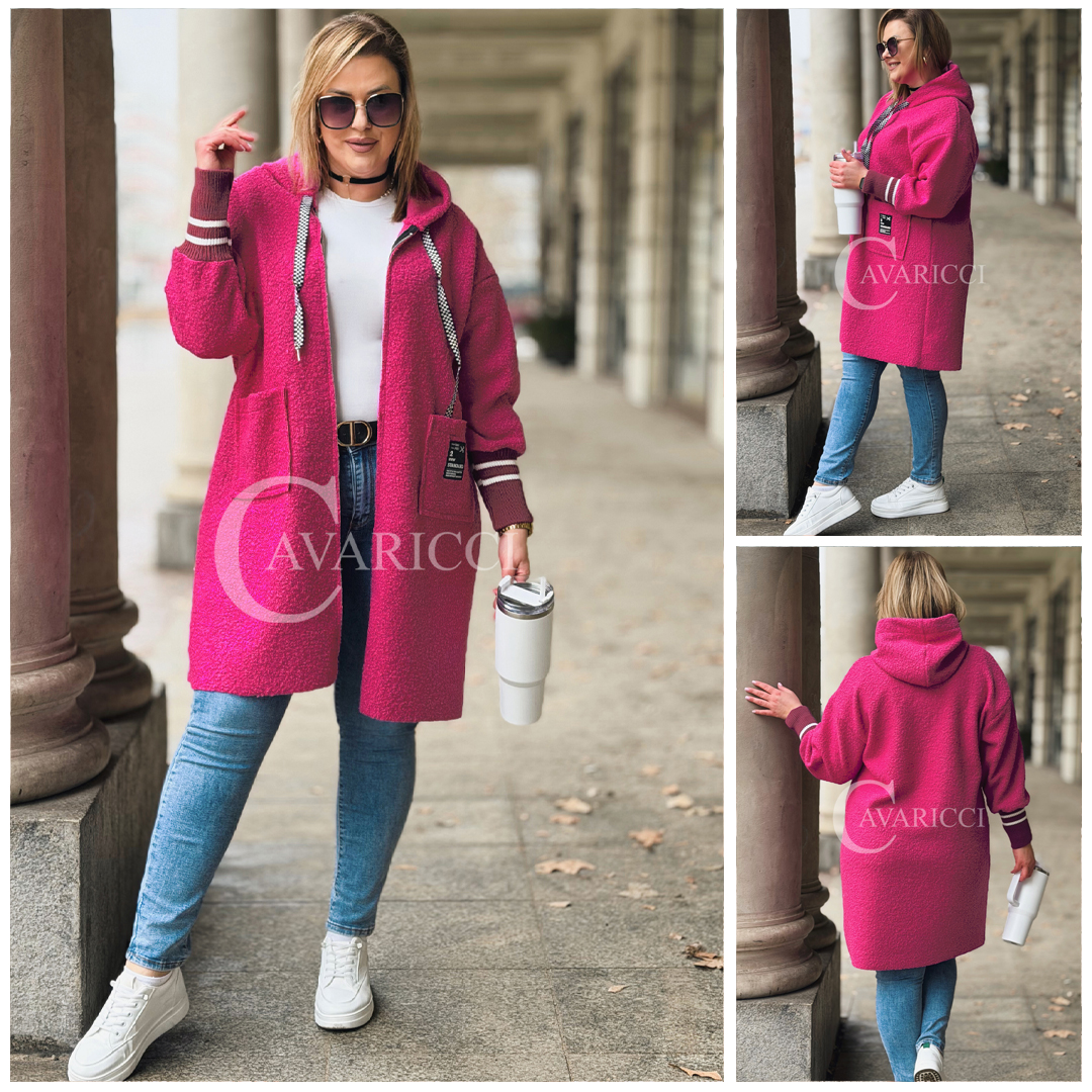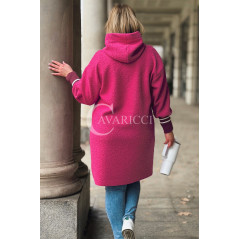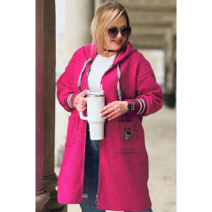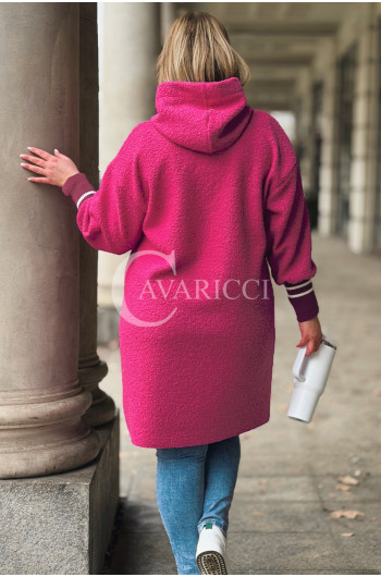 BETTA - Długa bluza boucle z kapturem i kieszeniami w kolorze różowym