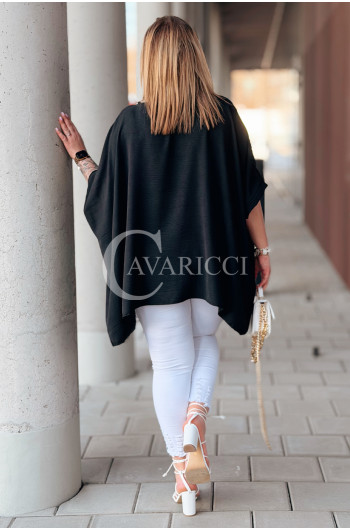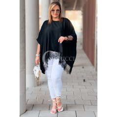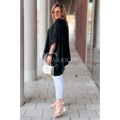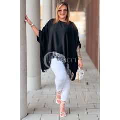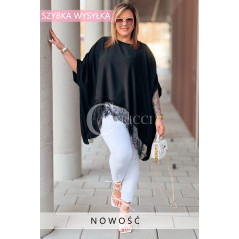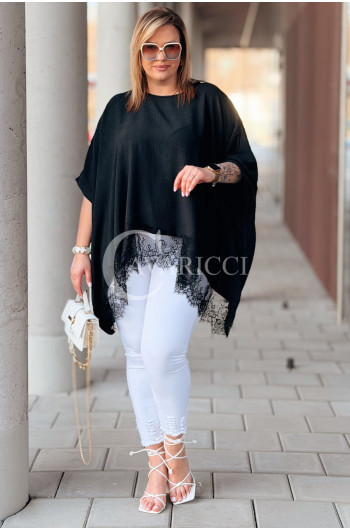 BINA - Modowa oversizowa bluzka wykończenie w koronce w kolorze czarnym
