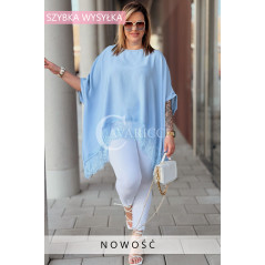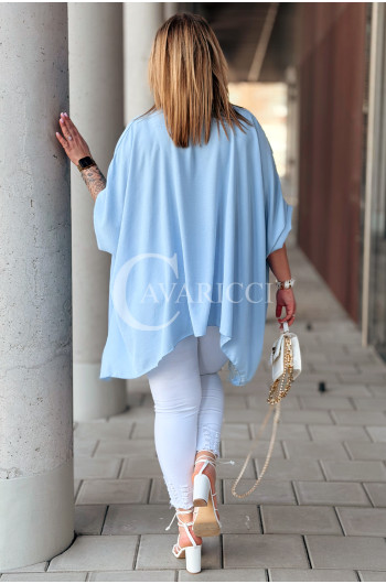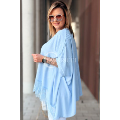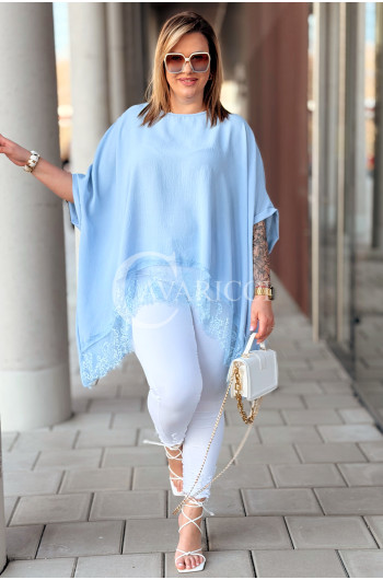 BINA - Modowa oversizowa bluzka wykończenie w koronce w kolorze błękitnym