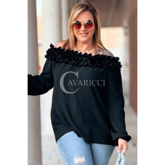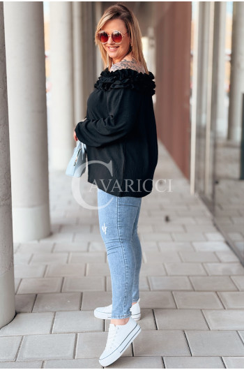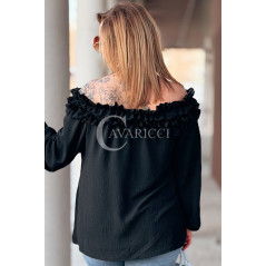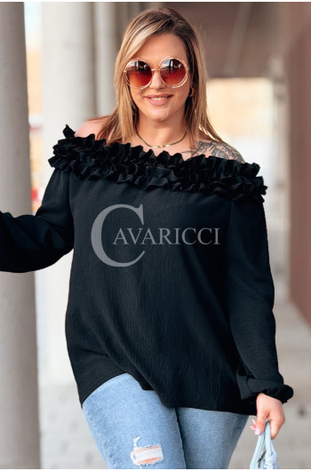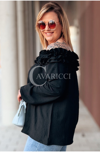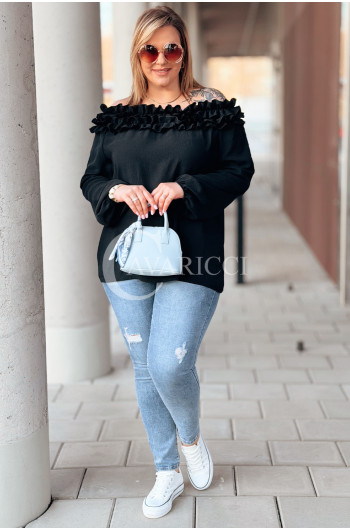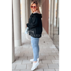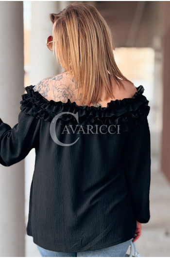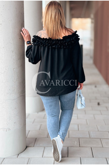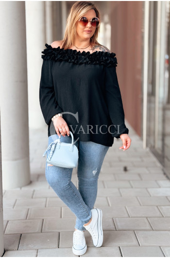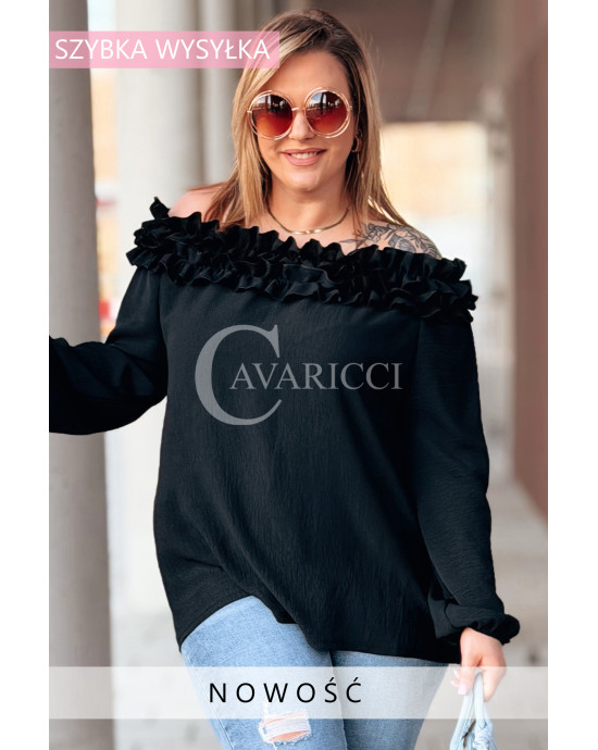REGINNA - Romantyczna bluzka hiszpanka która robi cały look w kolorze czarnym