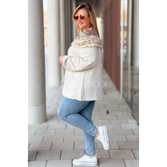 REGINNA - Romantyczna bluzka hiszpanka która robi cały look w kolorze beżowym