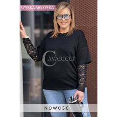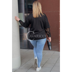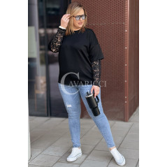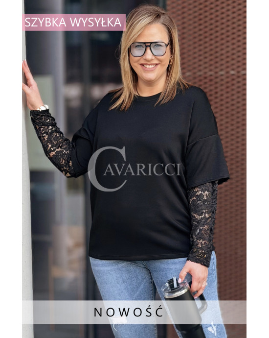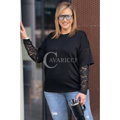 BENEDETTA - Bluza z koronkowym rękawem wygodna i stylowa w kolorze czarnym