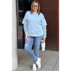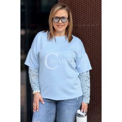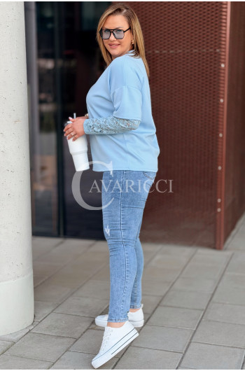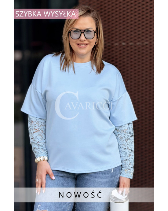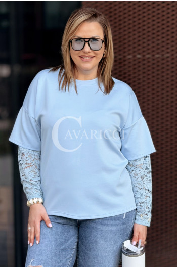 BENEDETTA - Bluza z koronkowym rękawem wygodna i stylowa w kolorze błękitnym