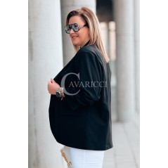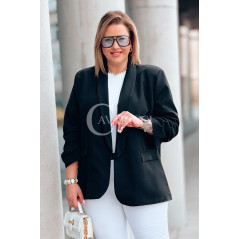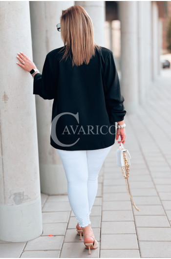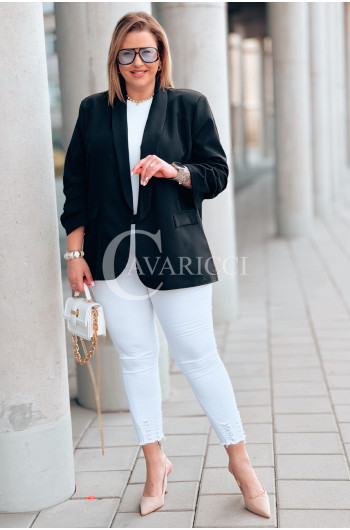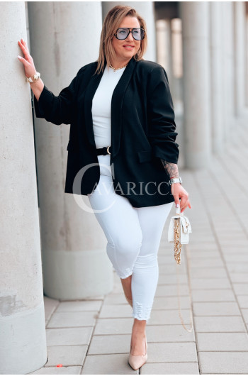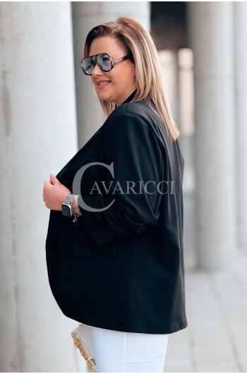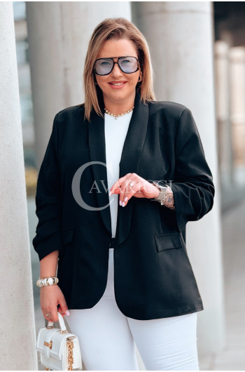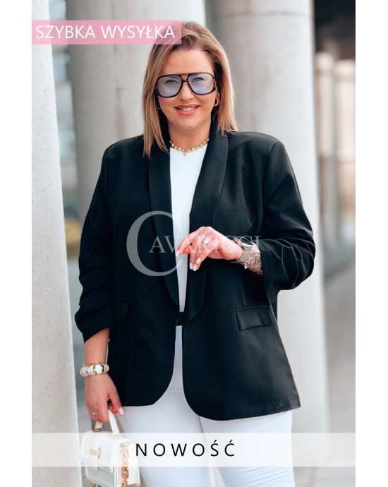 Marynarka LUCREZIA – Otwarty Fason z Marszczonym Rękawem na Podszewce w Kolorze Czarnym