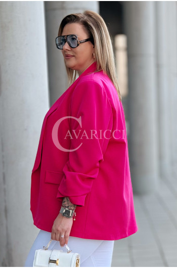 Marynarka LUCREZIA – Otwarty Fason z Marszczonym Rękawem na Podszewce w Kolorze Fuksji
