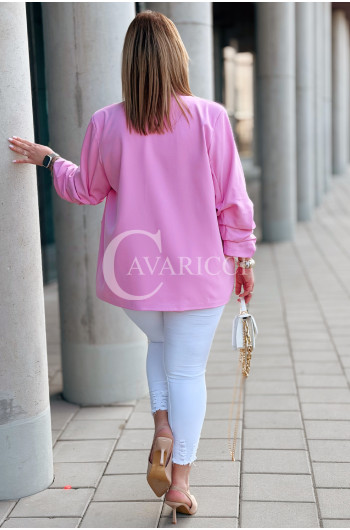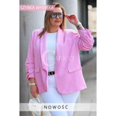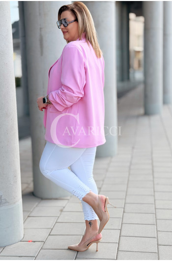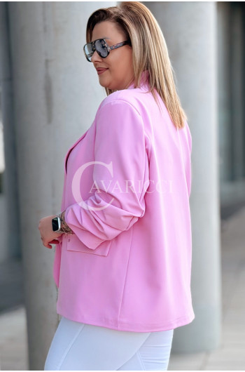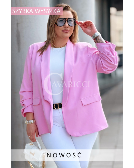 Marynarka LUCREZIA – Otwarty Fason z Marszczonym Rękawem na Podszewce w Kolorze Różowym