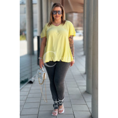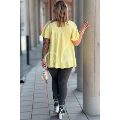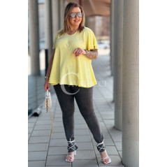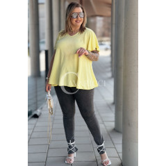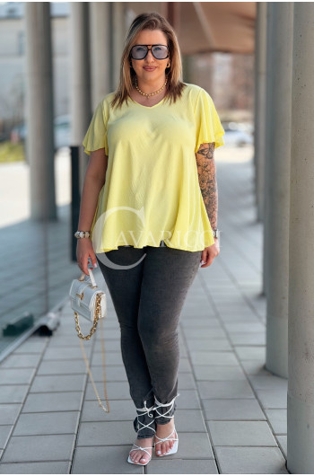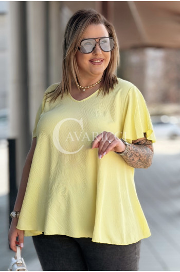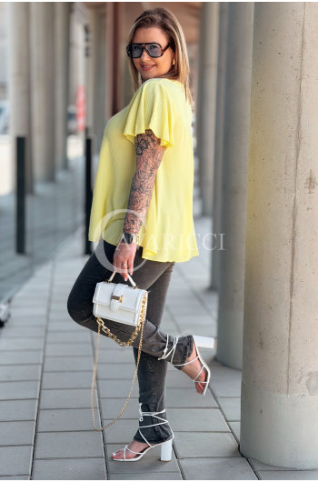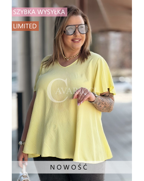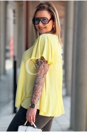 Bluzka MARINA – Zwiewny Krój Trapezowy z Rękawkiem Motylkiem Kolor Żółty