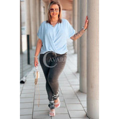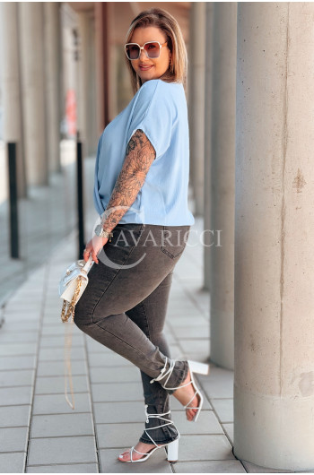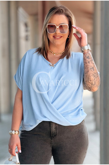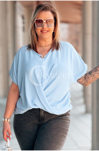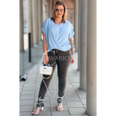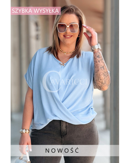 Bluzka SIENA – Kopertowe Marszczenie Modelujące Brzuszek Kolor Błękit