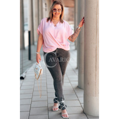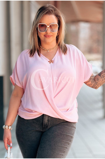 Bluzka SIENA – Kopertowe Marszczenie Modelujące Brzuszek Kolor Róż