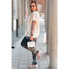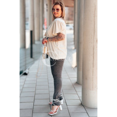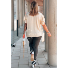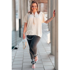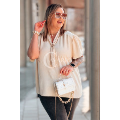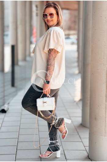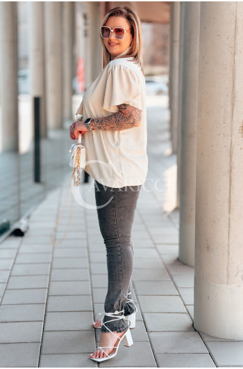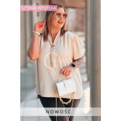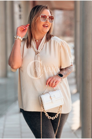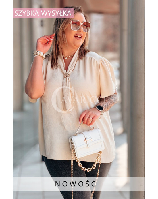 Bluzka PIA – Elegancka Krawatka, Biżuteryjny Detal i Zwiewny Rękawek Kolor Beżowy