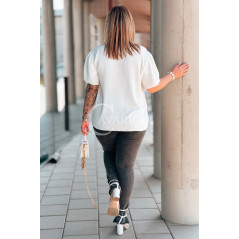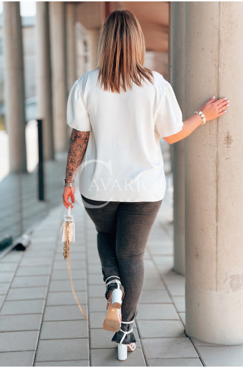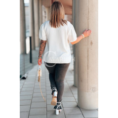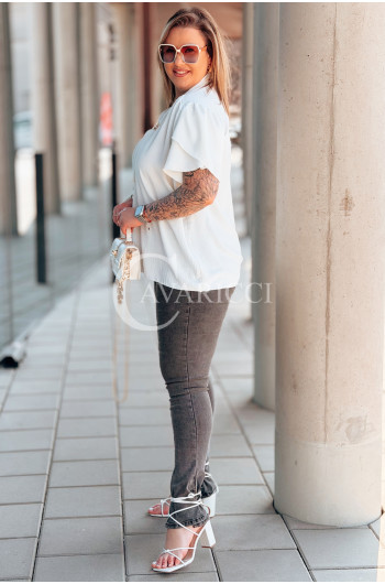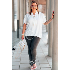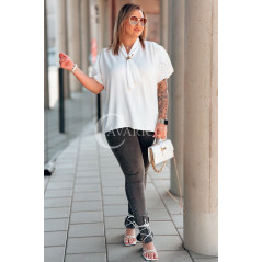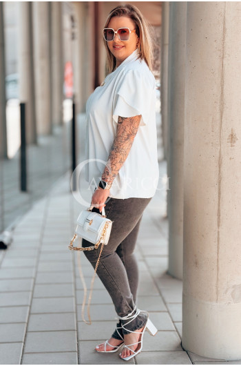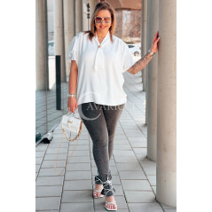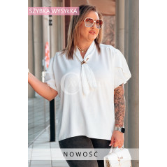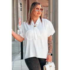 Bluzka PIA – Elegancka Krawatka, Biżuteryjny Detal i Zwiewny Rękawek Kolor Biały
