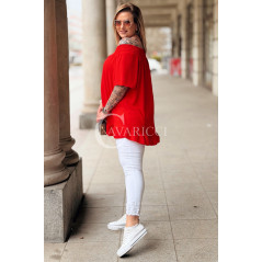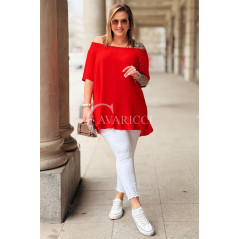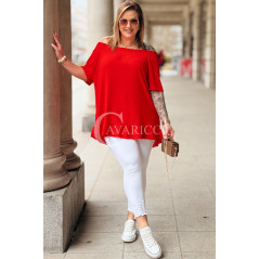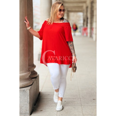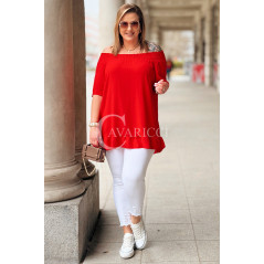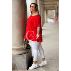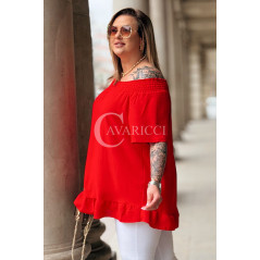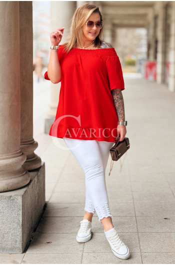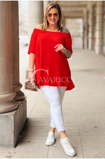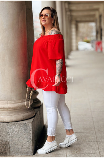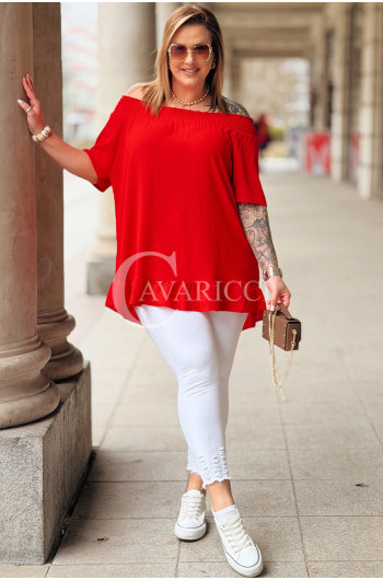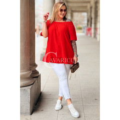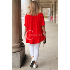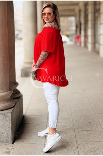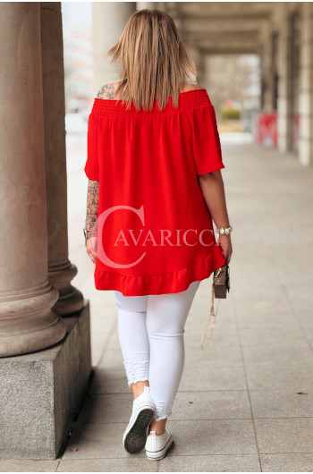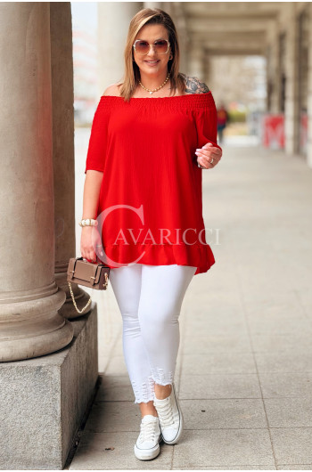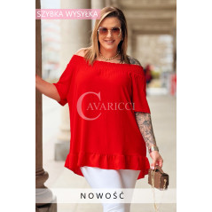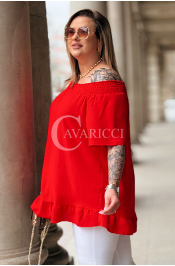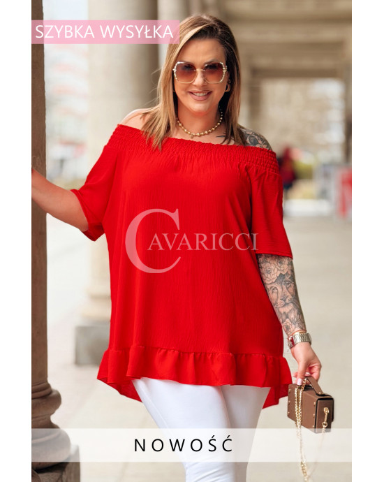 Bluzka BIAGIA – Zwiewna Hiszpanka z Falbaną Maskująca Brzuszek Kolor Czerwony