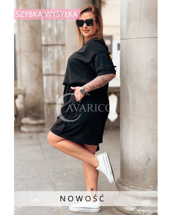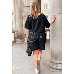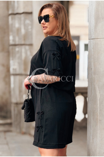 Komplet LORELLA – Luźny Letni Zestaw z Uroczymi Kokardkami Kolor Czarny