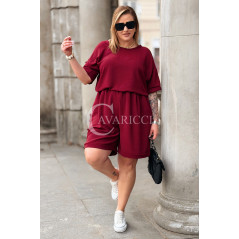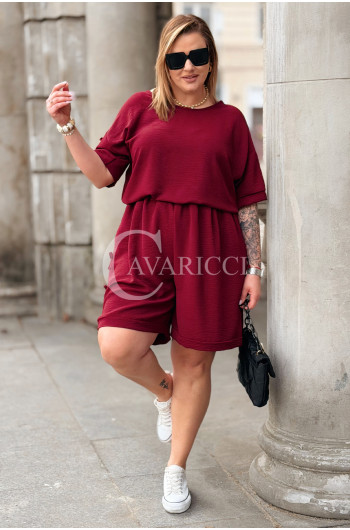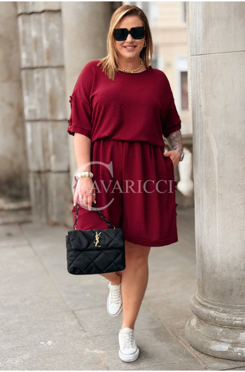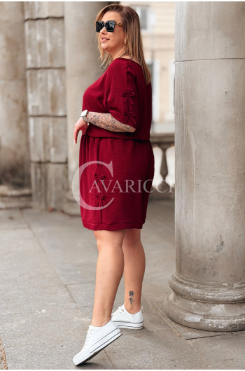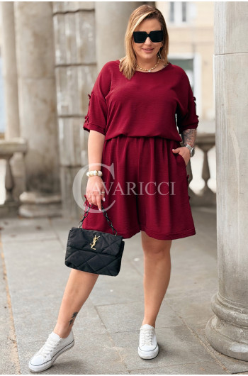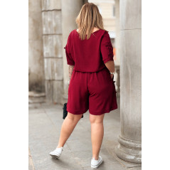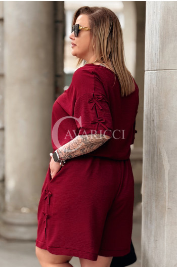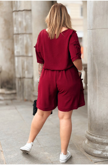 Komplet LORELLA – Luźny Letni Zestaw z Uroczymi Kokardkami Kolor Bordowy