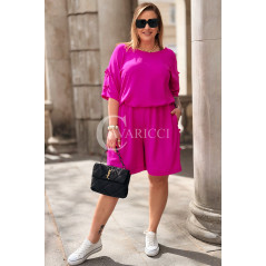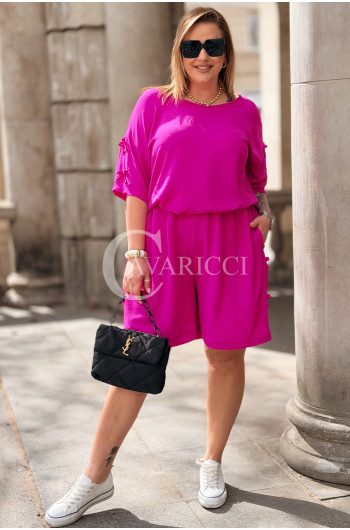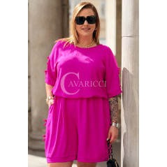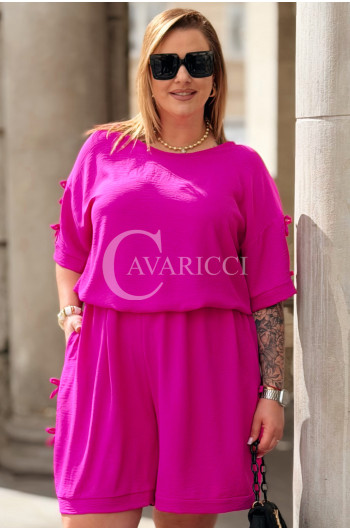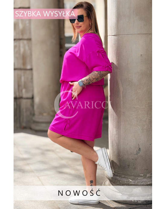Komplet LORELLA – Luźny Letni Zestaw z Uroczymi Kokardkami Kolor Fuksja