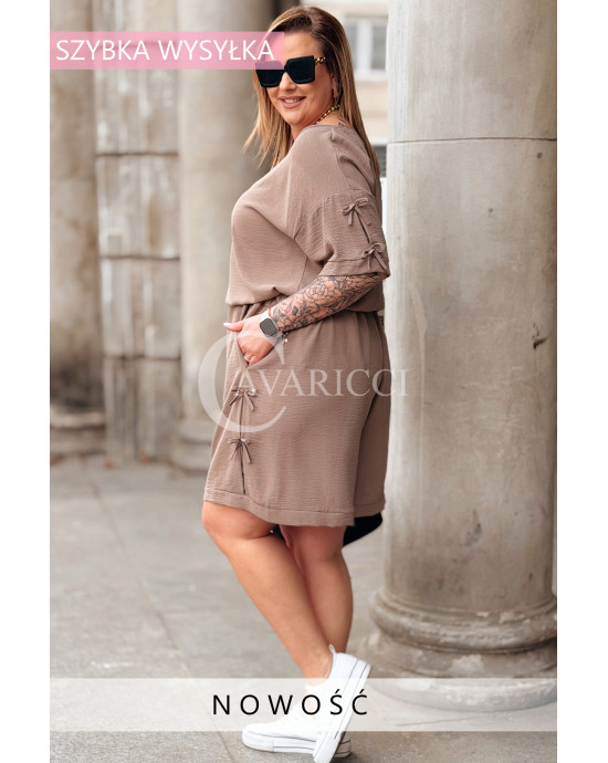 Komplet LORELLA – Luźny Letni Zestaw z Uroczymi Kokardkami Kolor Fango