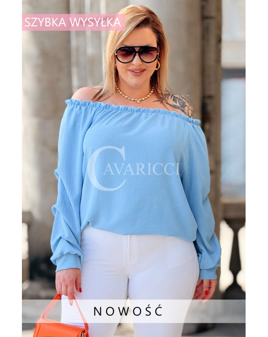 Bluzka AMORE – Zmysłowa Hiszpanka z Długim Rękawem Kolor Błękit