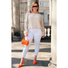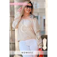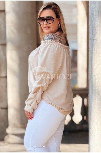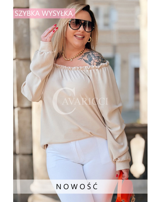Bluzka AMORE – Zmysłowa Hiszpanka z Długim Rękawem Kolor Beżowy