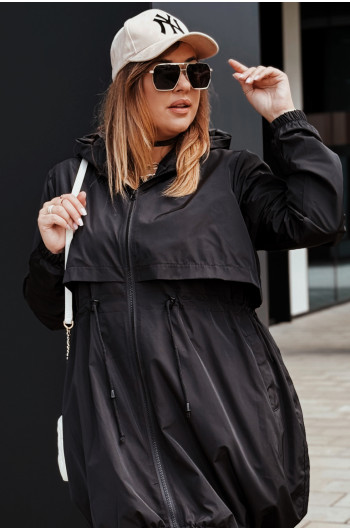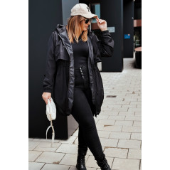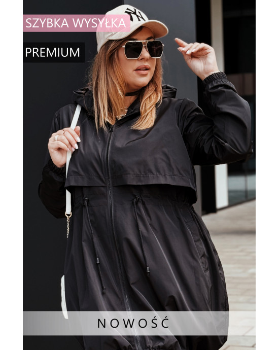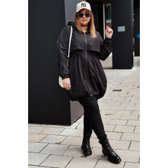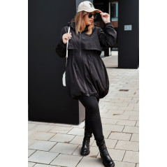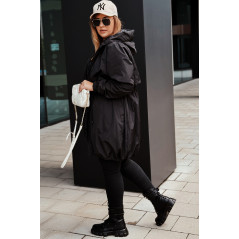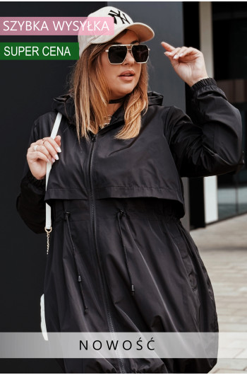 Fason: Oversize, z kapturem i ściągaczami w pasie, co pozwala na dopasowanie do sylwetki.