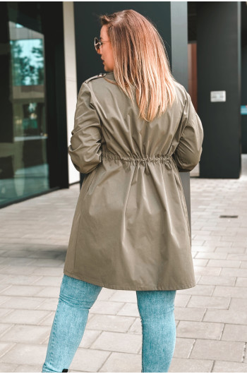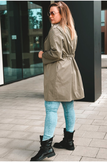 Talia: Regulowana, dzięki ściągaczowi, co pozwala dopasować płaszcz do sylwetki.