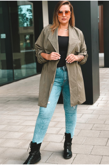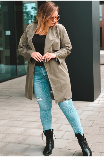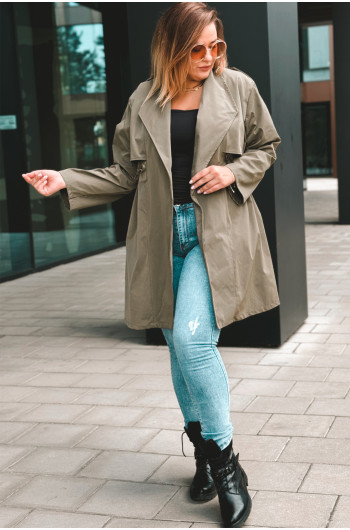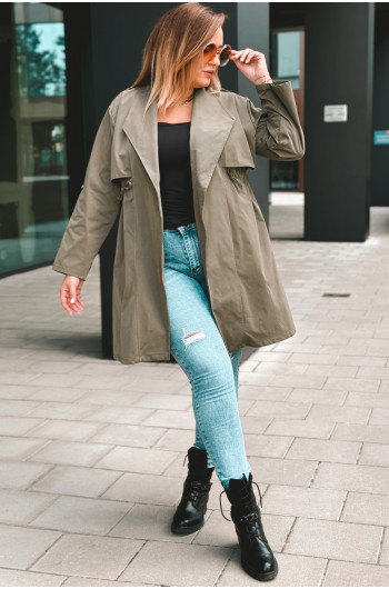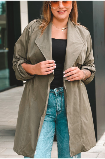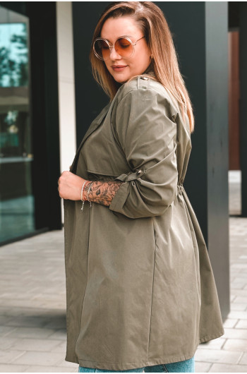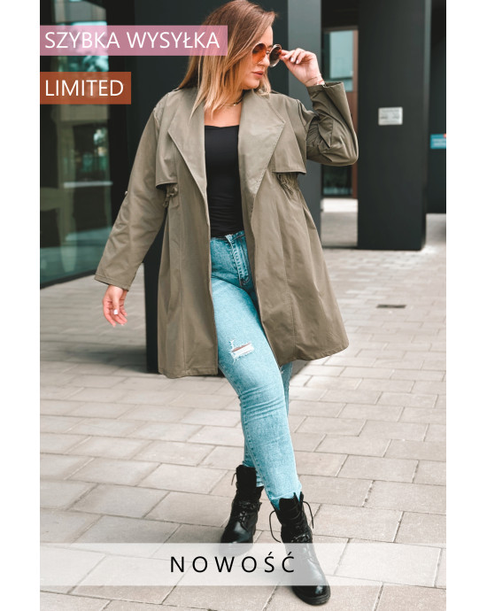 Fason: Płaszcz z możliwością regulacji w talii, idealna dla każdej sylwetki.