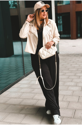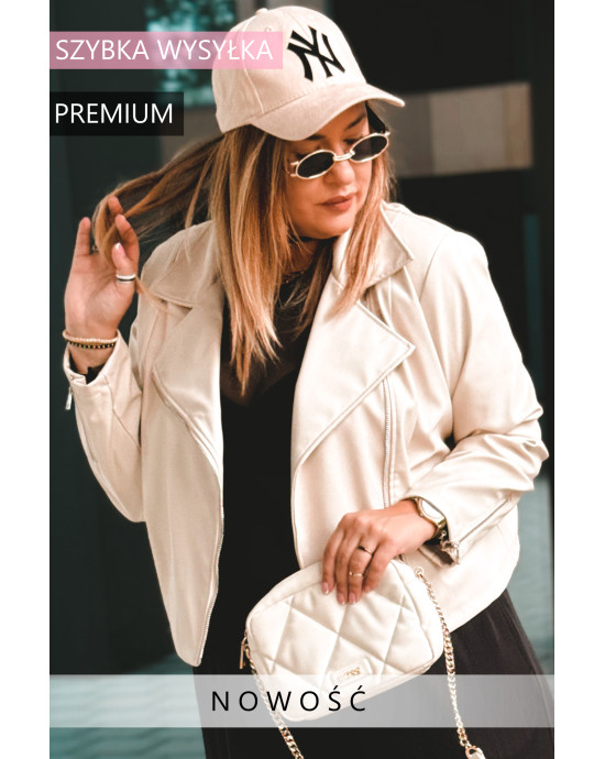 CANDANCE - Piękna kurtka z ekoskórki w kolorze kremowym