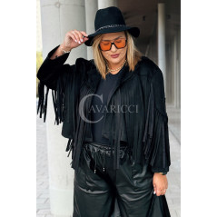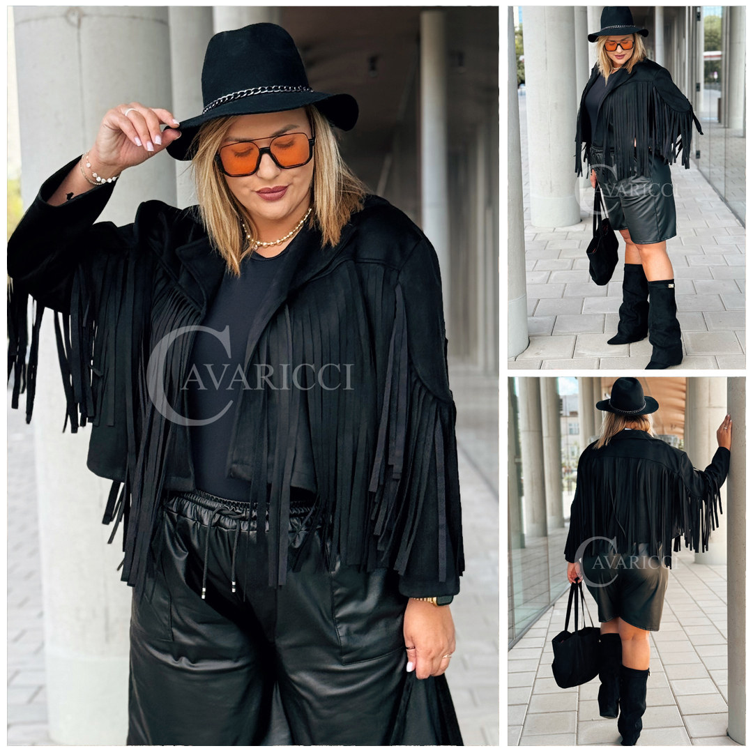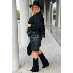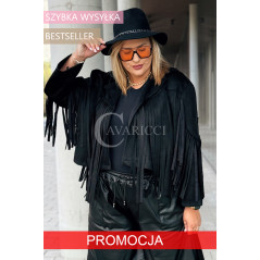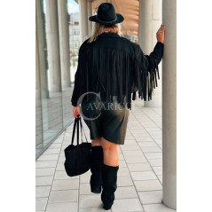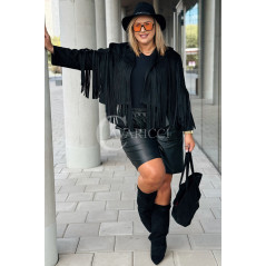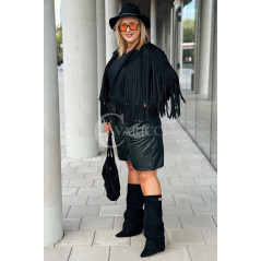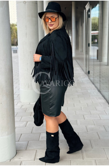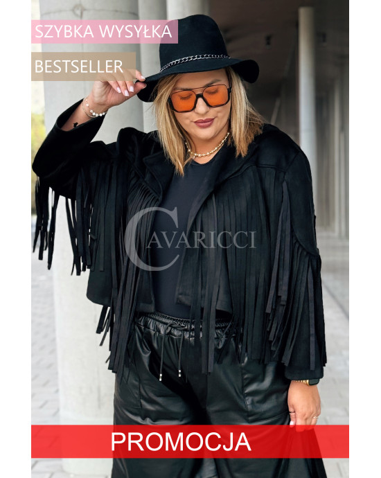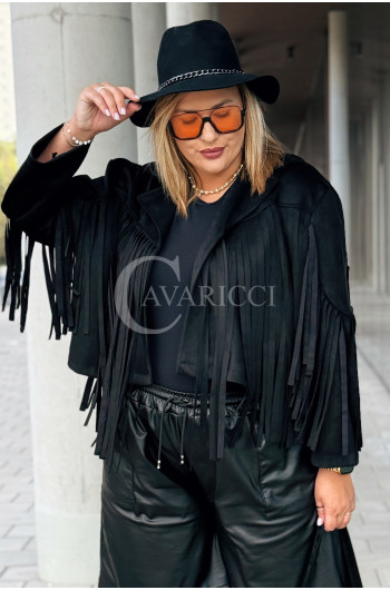 FORLI - Zamszowa boho kurteczka z frędzlami w kolorze czarnym